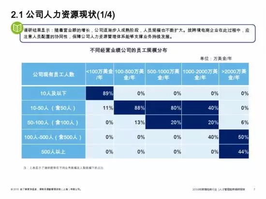 该报告指出,随着营业额的增长,各个跨境电商企业步入成熟阶段,人员规模也不断扩大。