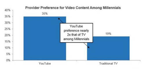 comScore和YouTube study最近调查发现,大约35%的千禧一代更爱看YouTube视频,仅18%喜欢传统电视节目。