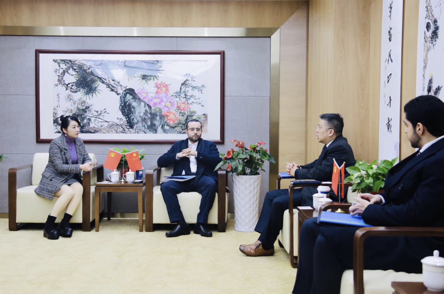 1月15日上午,巴林经济发展委员会主任Ali Mudaifa先生 、巴林经济发展委员会王室代表Sh. Salman Al-Khalifa先生、巴林王国经济发展委员会驻华代表蒋赟先生一行,到访杭州跨境电子商务协会并进行座谈交流。