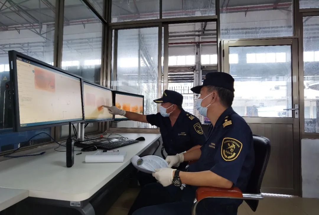 黄埔海关所属沙田海关关员查看跨境电商货物机检图像