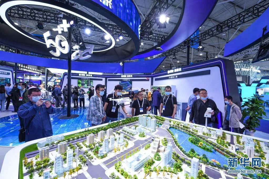 ▲ 2021年5月26日,参会者在2021中国国际大数据产业博览会上参观5G智慧城市模型。(来源:新华网)