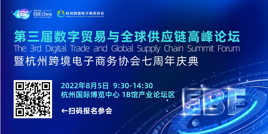 8月5日,第三届数字贸易与全球供应链高峰论坛暨杭州跨境电子商务协会七周年庆典同期举办,展望趋势,守正创新,未来可"柒"!