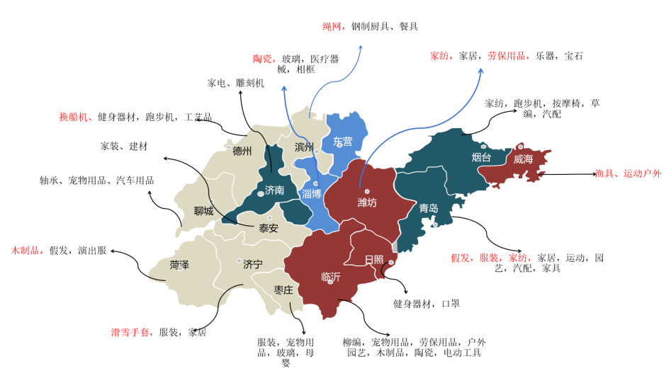 集中展示山东省特色产业带: