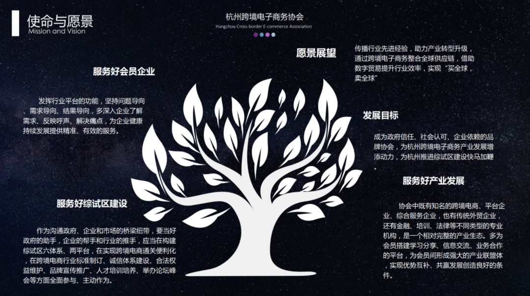 在扩大朋友圈、拓展生态圈之外,同时还要提升服务圈。我们杭州跨境电商协会正在搭建一个产业平台,在这个平台上,协会所有的会员既是我们服务的对象,同时他们提供的服务也可以助力其他会员企业。协会会员企业之间、上下游产业之间相互赋能。