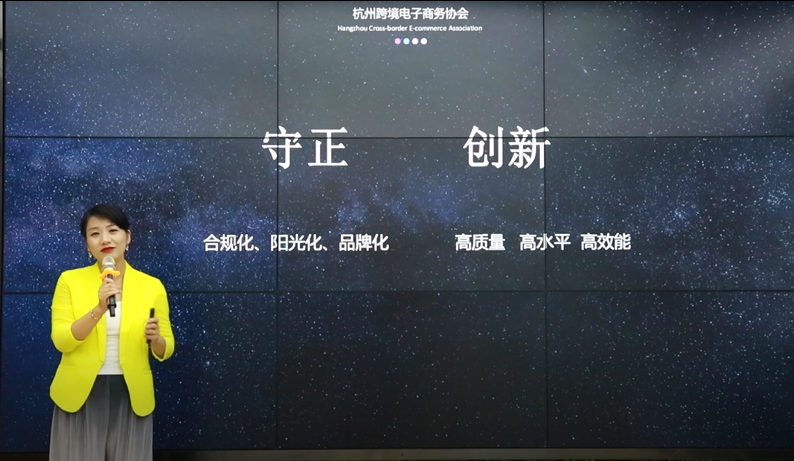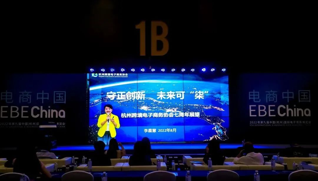 2022年8月5日,由杭州跨境电子商务协会主办的第三届数字贸易与全球供应链高峰论坛暨杭州跨境电子商务协会七周年庆典在第九届中国(杭州)电子商务博览会期间成功举办。杭州跨境电子商务协会常务副会长、秘书长李星慧带来《行业展望:守正创新 未来可“柒”》主题分享。