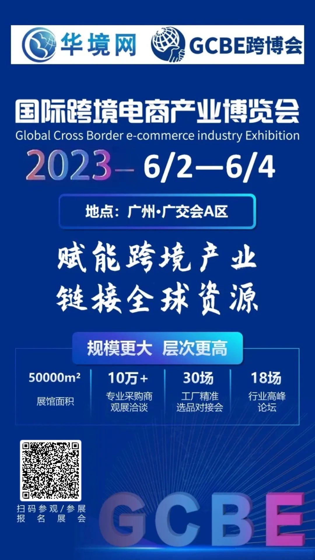 “华境杯”颁奖典礼暨GCBE跨博会珠江之夜欢迎晚宴。“2022年度跨境电商百强企业和领军人物评选及表彰活动”暨“华境杯”将于2023年6月2日在广州·广交会A区“GCBE国际跨境电商产业博览会”开展期间举办。历届百强企业:中国邮政、中远、嘉里、赛维、苏宁、洋葱、卓志、银联、万邑通、欢聚集团等200家企业;历届领军人物:廖新辉、邹欣、陈文平、王树彤、李淙、曾碧波、高孟、李金玲等。参会人数:800人以上。往届“跨境电商百强企业和领军人物评选及表彰活动”得到了社会各界的高度关注,国内外多家媒体争相报道。
