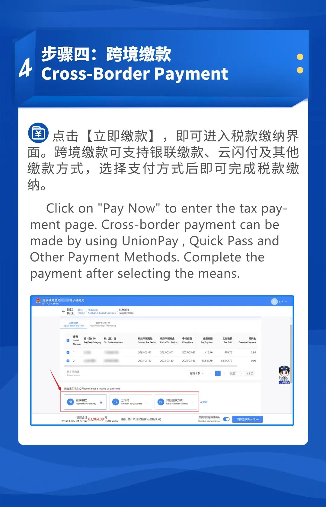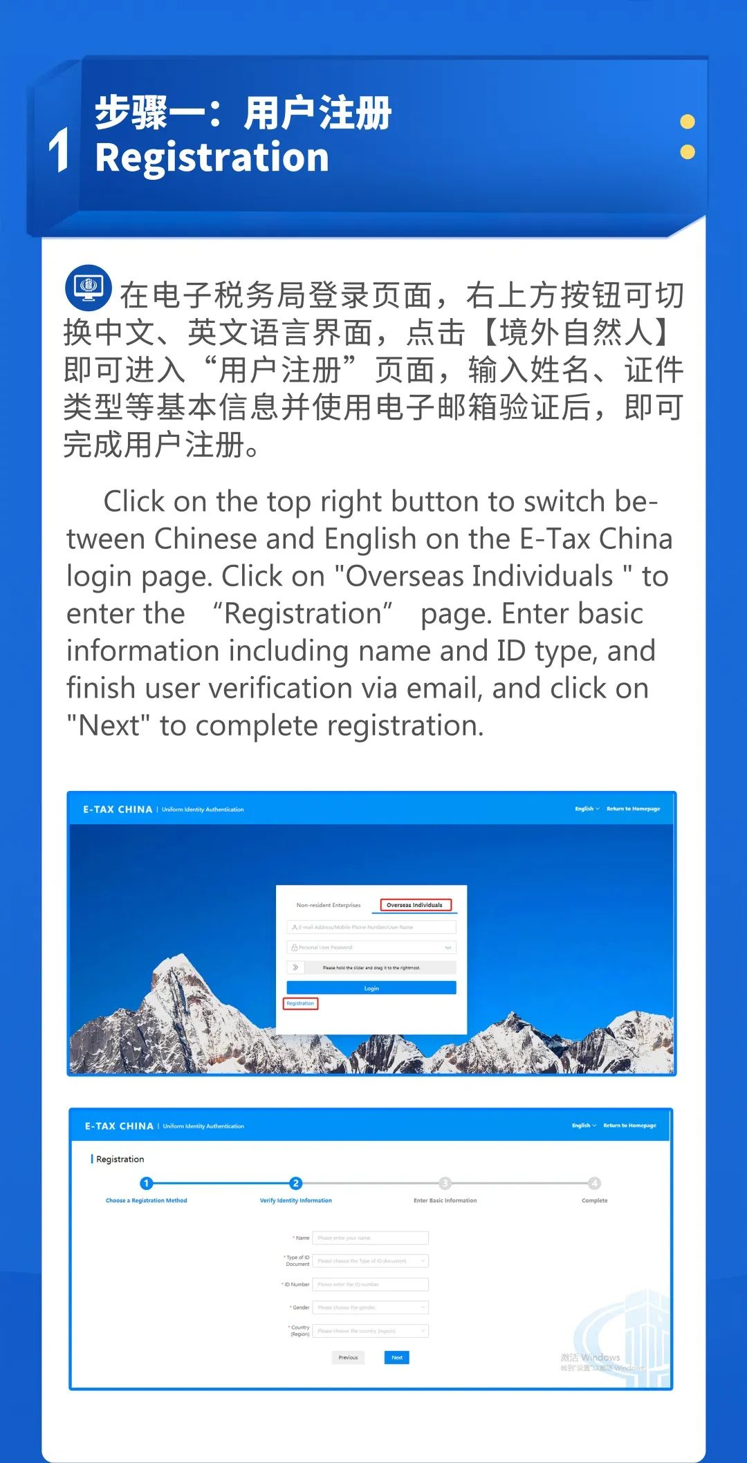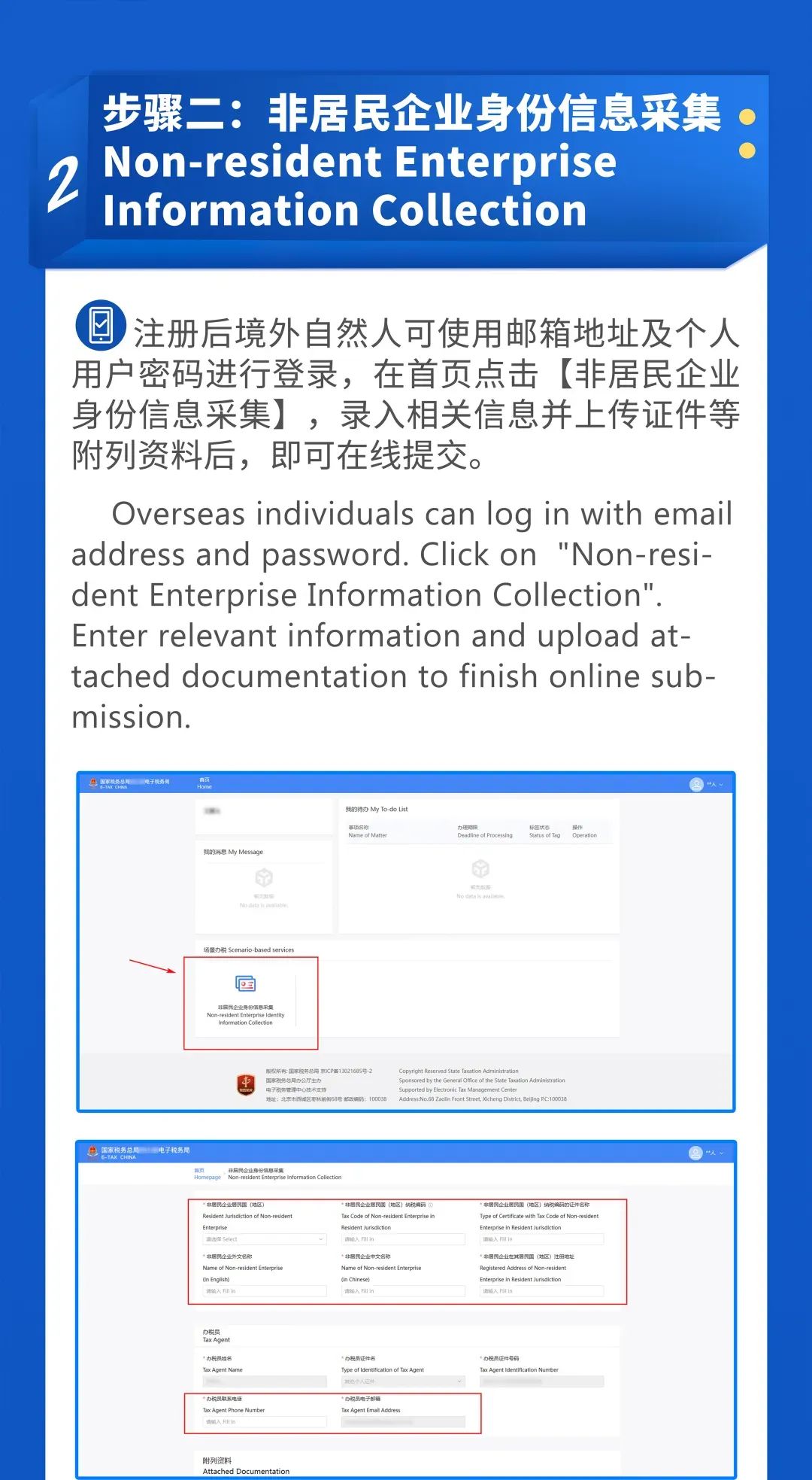 该场景上线后,全球非居民企业可远程完成中国办税“实名认证”,并被赋予全国唯一的身份码和“一户式”身份档案,畅行无阻登录全国各省区市的电子税务局,办理申报缴税等涉税事项。具体如何办理,“四步走”教会您↓