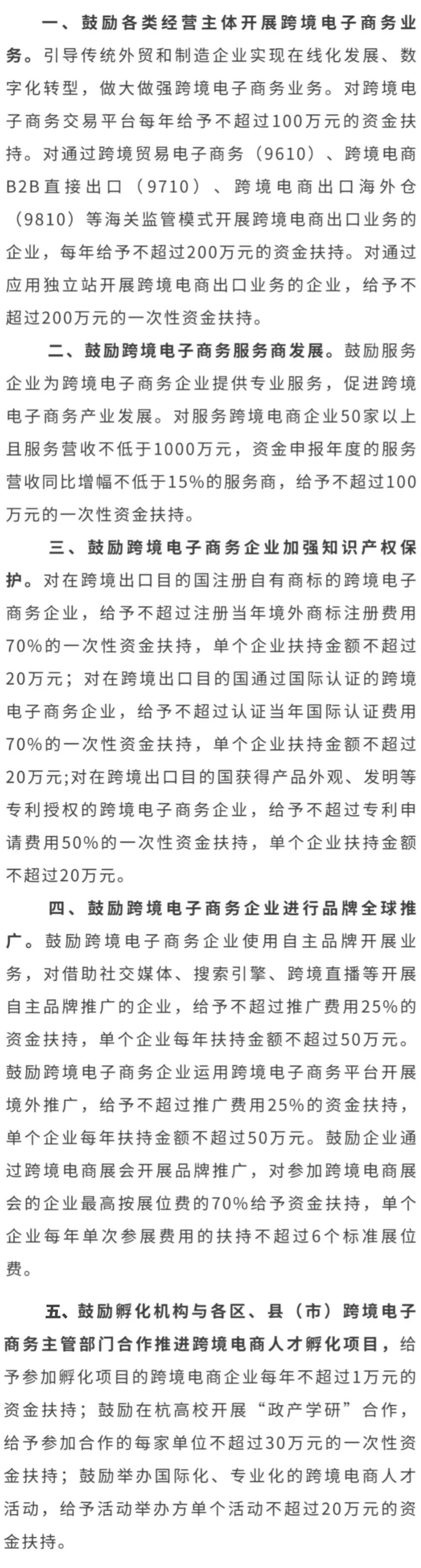 《杭州市人民政府办公厅关于加快推进跨境电子商务高质量发展的实施意见》(杭政办函〔2023〕9号)文件内相关内容。