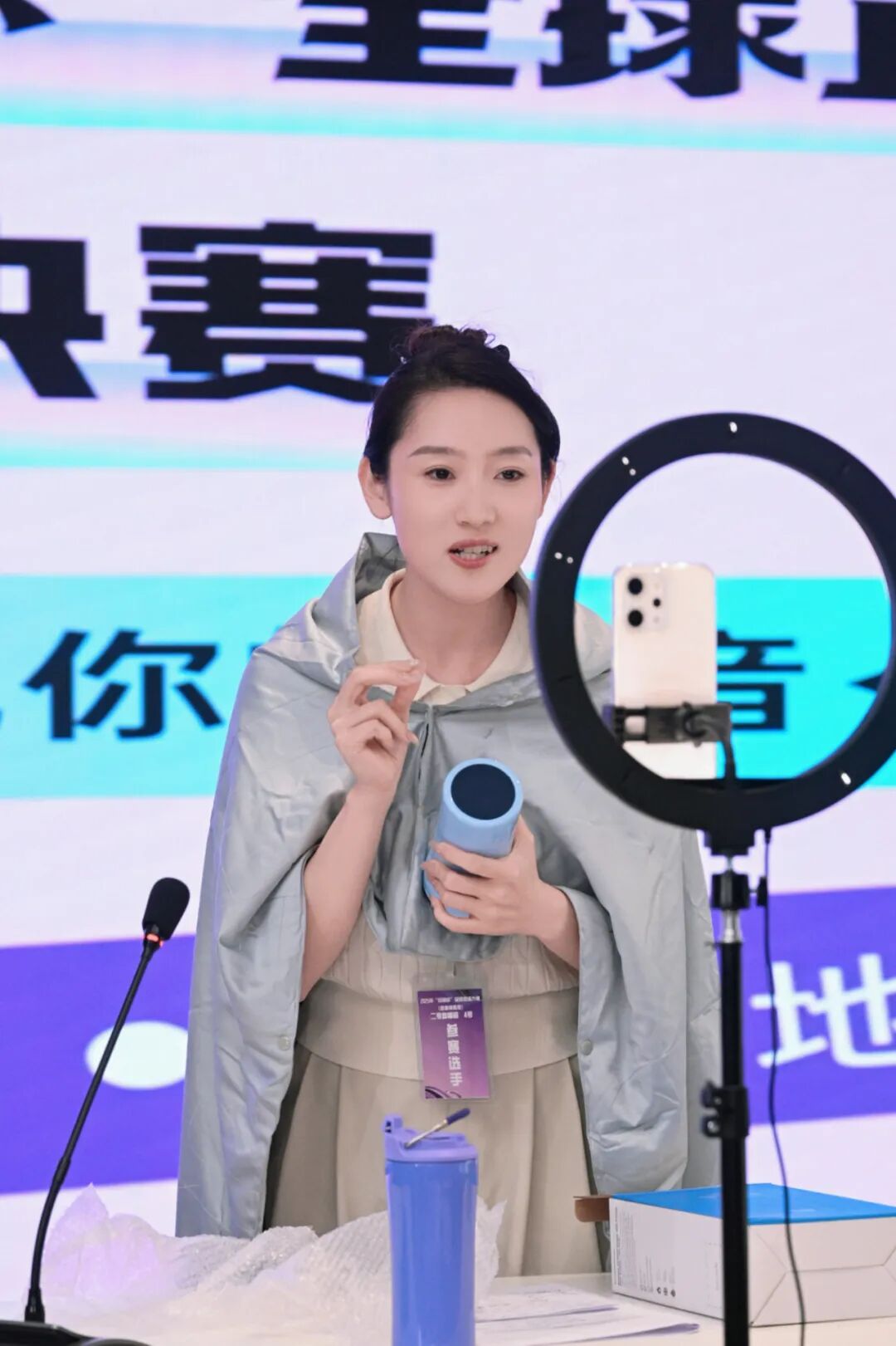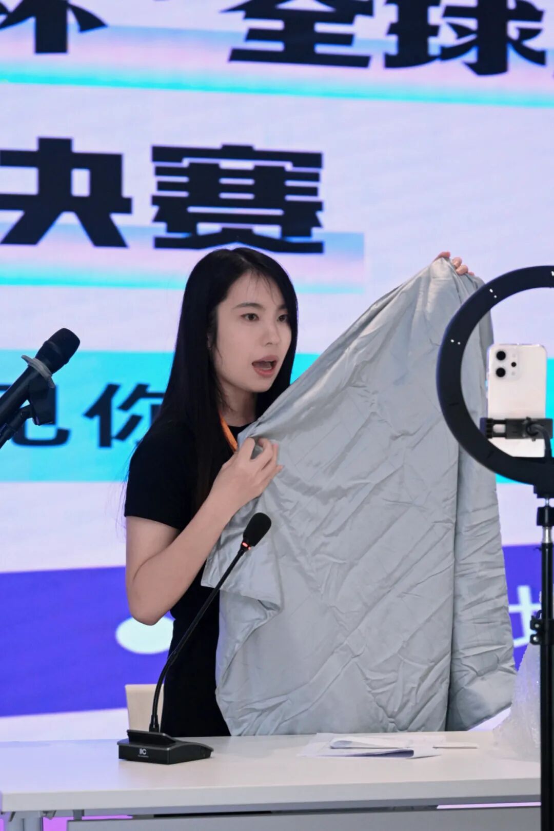 本次竞赛为个人赛,其中复赛环节着重考察选手直播实战能力,现场70多位选手需要根据自己已准备好的脚本进行上镜实战,全程在线完成一场包含:开场介绍、直播预告、爆款推介、促单转化、弹幕回答、下期预告、结束语等环节在内的完整直播流程。