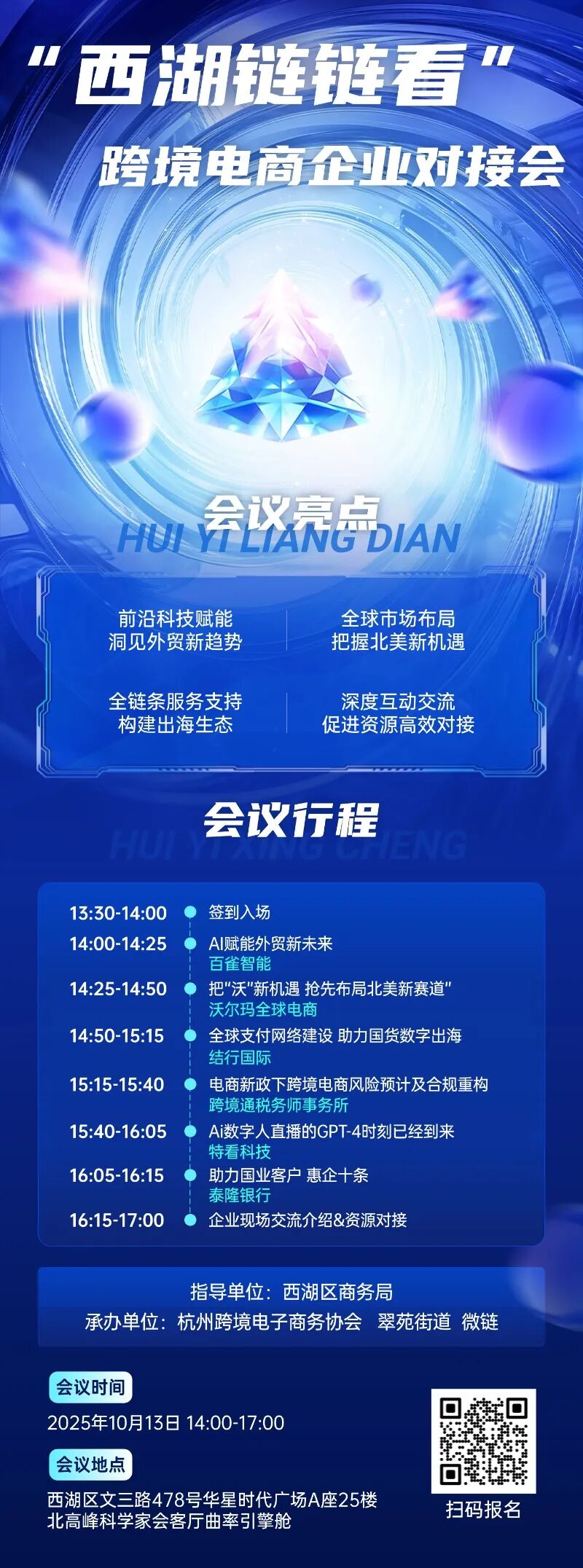 点击上方蓝字,记得关注我们!前沿科技赋能、全球市场布局等多重亮点💡!还有满满行程助力企业资源高效对接🤝!想把握跨境电商新机遇,就来现场“链”上机遇,“链”出未来~快扫码报名📲!编辑:应豪微审核:王园推荐阅读一件餐椅的跨境奇遇:物流正在改写出海规则CRS新规“重锤”落下!跨境电商企业如何应对关注“杭州跨境电商”回复关键词“入会”获得【入会指南】在看你就赞赞我!