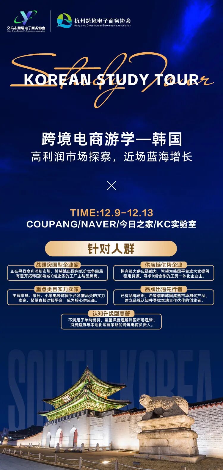 国内内卷太累?12.9-13,义乌 & 杭州跨境电子商务协会带你闯韩国电商高利润市场: