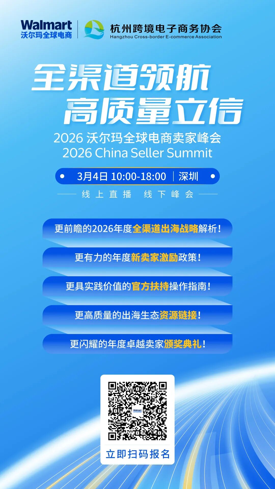 📢跨境电商的朋友们注意了!沃尔玛全球电商卖家峰会,已经正式定档3 月 4 日!这场以 “全渠道领航,高质量立信” 为主题的峰会,将在深圳线下举办,并同步开启线上直播,为你一站式解锁出海新商机。