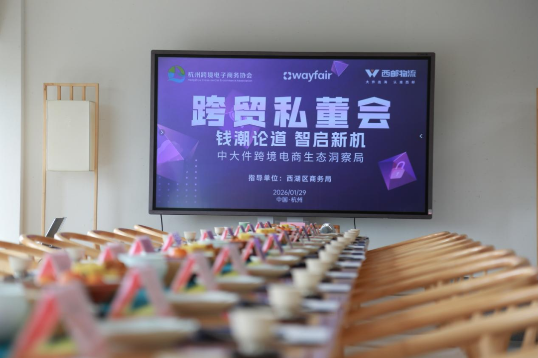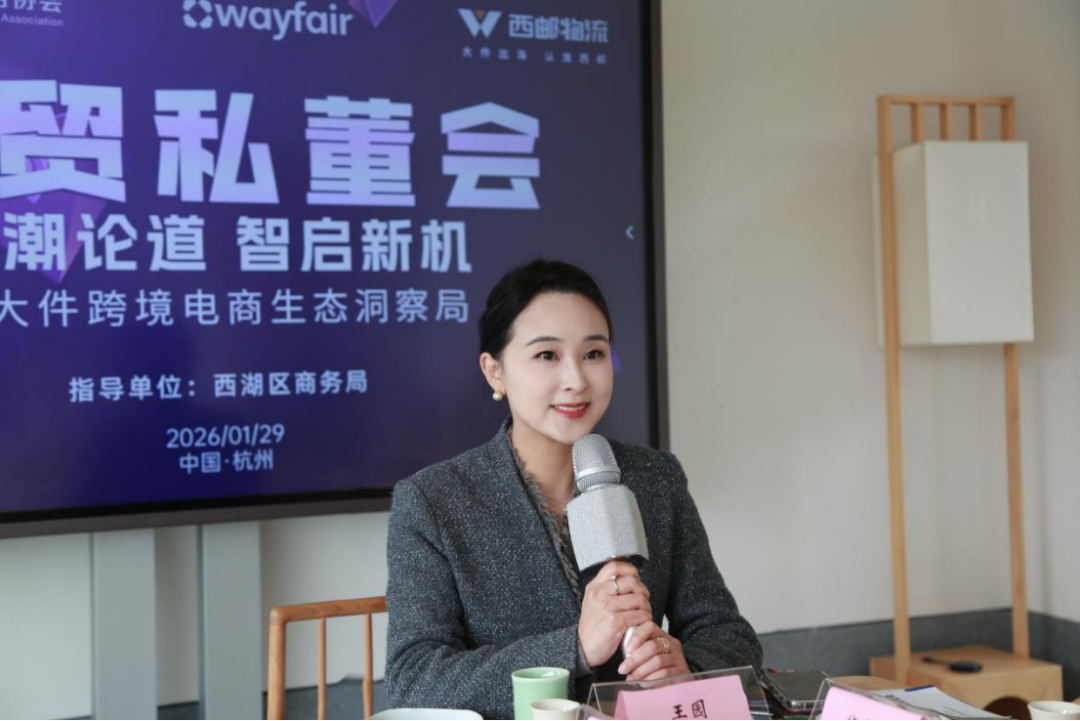 在此背景下,1月29日,由西湖区商务局指导,杭州跨境电子商务协会主办的以钱潮论道 智启新机 中大件跨境电商生态洞察局为主题的跨贸私董会,并邀请到顾家家居、霖生家居、创式云科技、朗拓智能家具、慈溪悦达、中艺实业等近二十位大卖齐聚一堂,助力中国中大件品牌突破瓶颈,在全球万亿市场中抢占价值高地,书写跨境贸易高质量发展的新篇章。