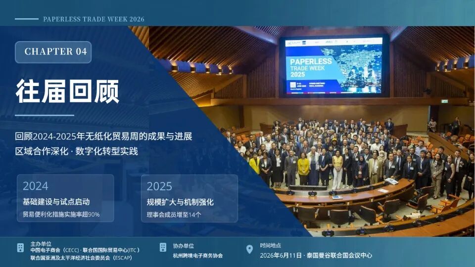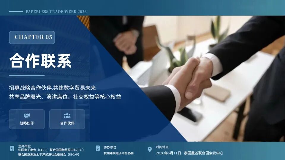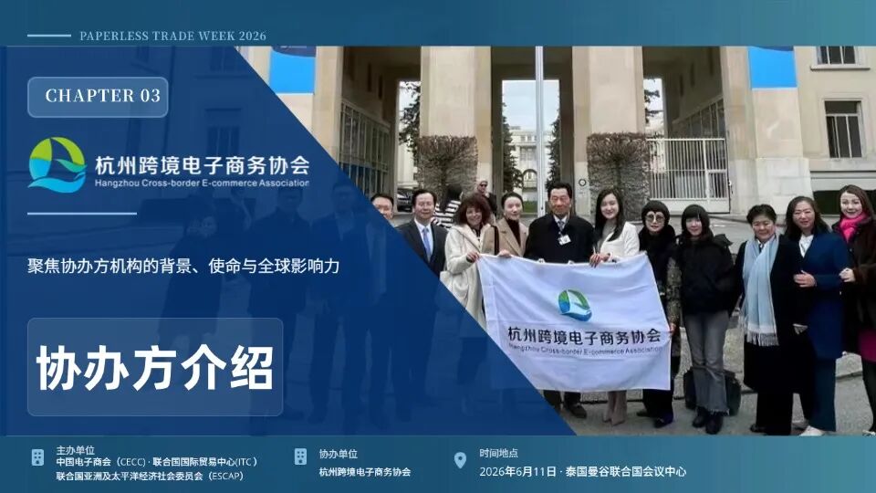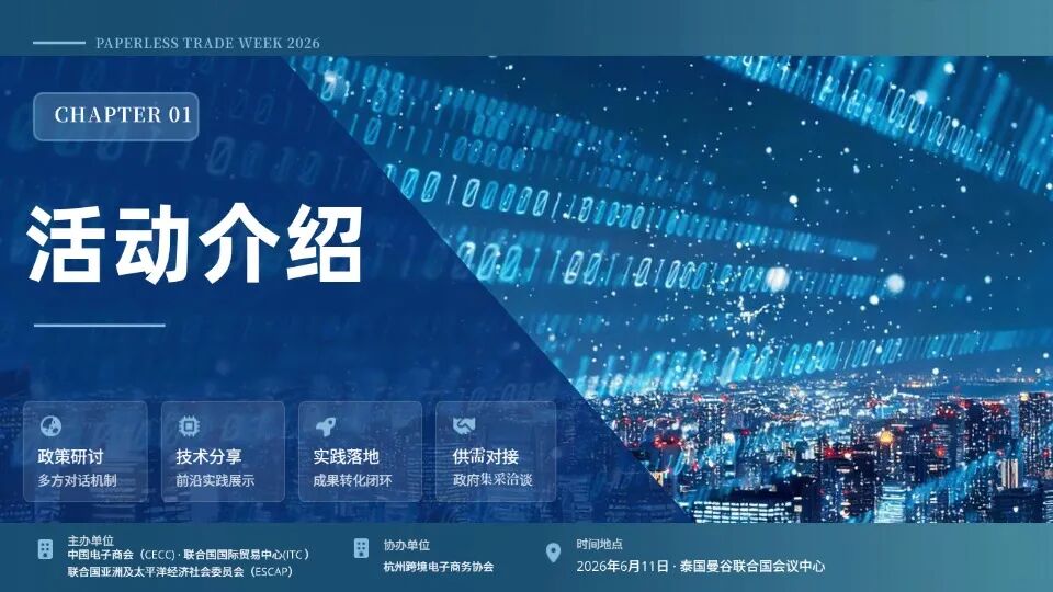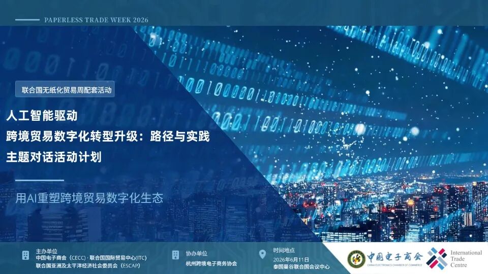 2026 年亚太贸易便利化论坛与无纸化贸易周(APTFF x PTW)即将启幕,由中国电子商会、联合国亚洲及太平洋经济社会委员会(ESCAP)主办,杭州跨境电子商务协会协办的「人工智能驱动 跨境贸易数字化转型:路径与实践」主题对话活动,现正式面向全球开启合作伙伴招募。