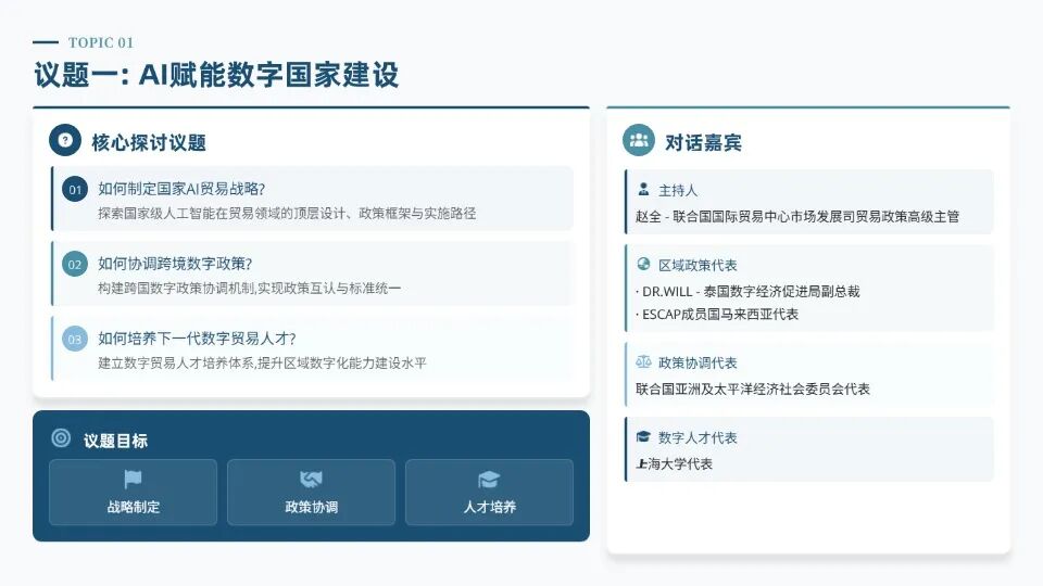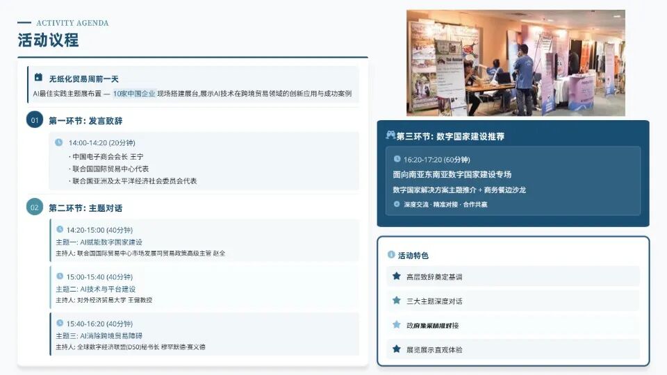 本次活动立足泰国曼谷联合国会议中心,汇聚 30 + 国家及地区、150 + 参会嘉宾,聚焦 AI 赋能数字国家建设、AI 技术与平台建设、AI 消除跨境贸易壁垒三大核心议题,搭建政策研讨、技术分享、实践落地、供需对接的多元对话平台。